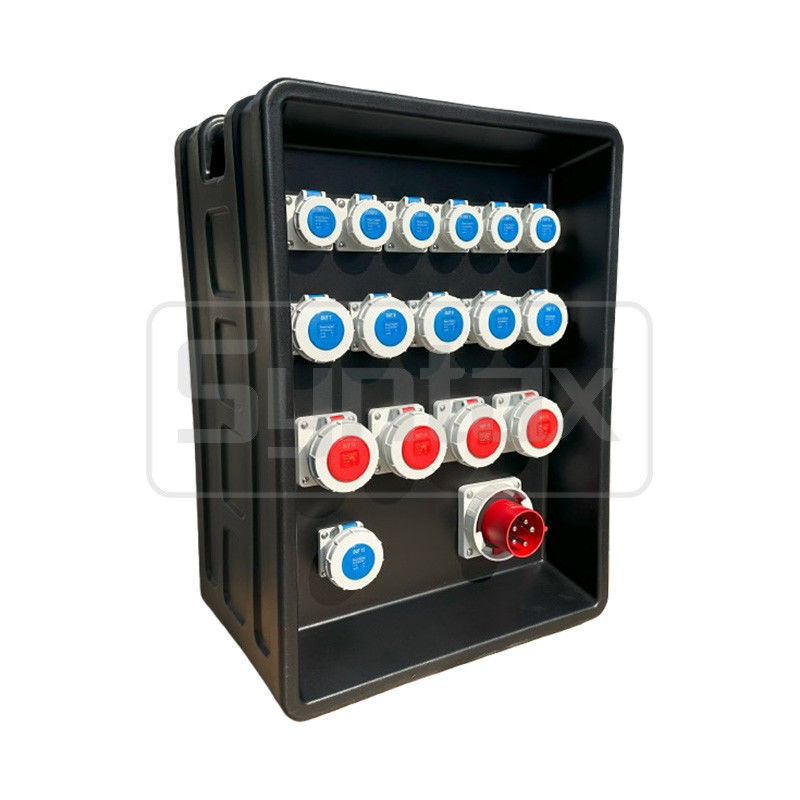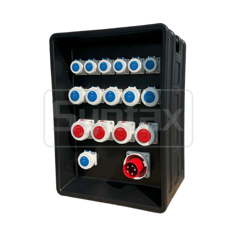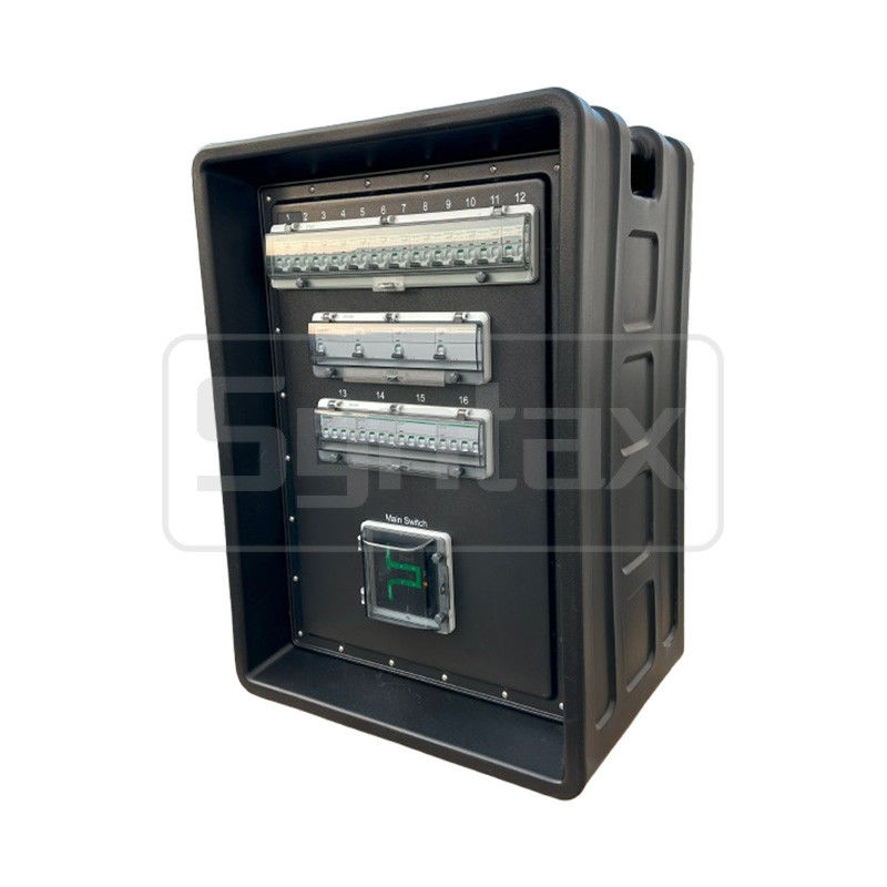 A caixa de distribuição de energia de 3 fases da série MD IP67 Protegida contra intempéries da Syntax oferece excelente distribuição de energia elétrica e segurança para trabalhar ao lado do seu gerador.As nossas placas de distribuição oferecem o melhor em distribuição de energia portátil.