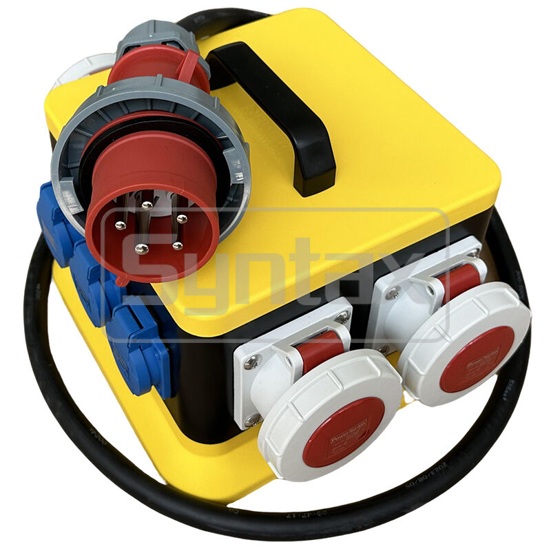 Caixa de Distribuição Portátil Estanque Syntax MZ8 IP67 32A/5P Trifásica 400v Com Cabo de Borracha Embutido de 1,8m para Exteriores 26*26*24,5CM