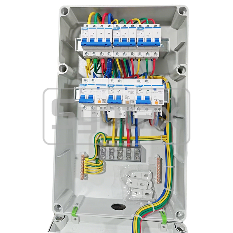 | Incoming Main Switch | Direct connect through cable gland into built-in terminals at bottom, protected by 1 * 4P 63A MCB |