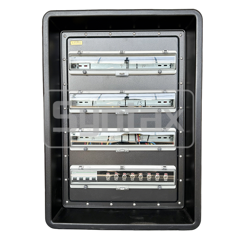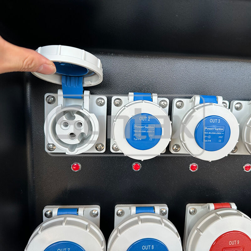 | Outgoing 1-6 | 6 × 3P 16A 220V IP67 Soquetes montadas em painel, protegidas por RCBOs 6 × 1P+N 16A 30mA |